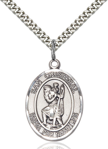 • Sterling Silver San Cristobal Pendant, Stainless Silver Heavy Curb Chain