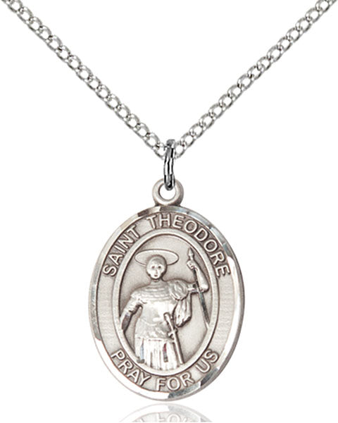 - Sterling Silver St. Theodore Stratelates Pendant, 18 inch Sterling Silver Curb Chain