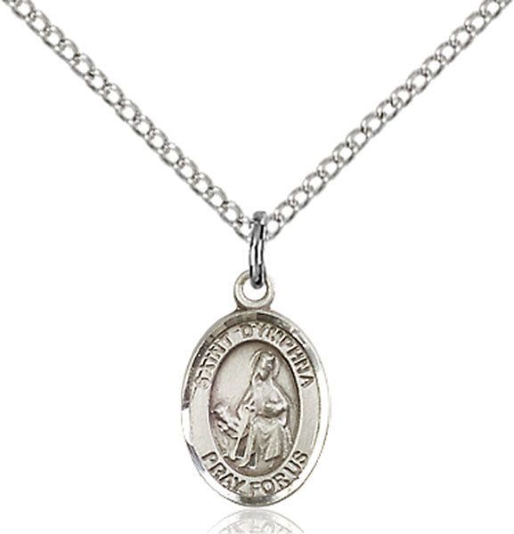 - Sterling Silver St. Dymphna Pendant, Sterling Silver Lite Curb Chain