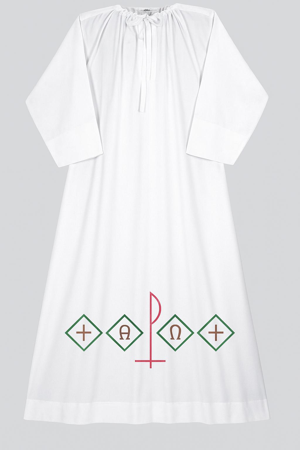 Alb is embroidered with a Chi-Rho Alpha & Omega design.