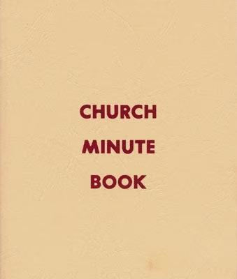 A 6 3/4" x 8 1/4" bound 54-page book for recording minutes of business meetings. Lined pages have copy at the top of each page that states: Minutes of Church Business Meeting (Each Meeting Should Be Dated and Signed By Clerk and Moderator.)