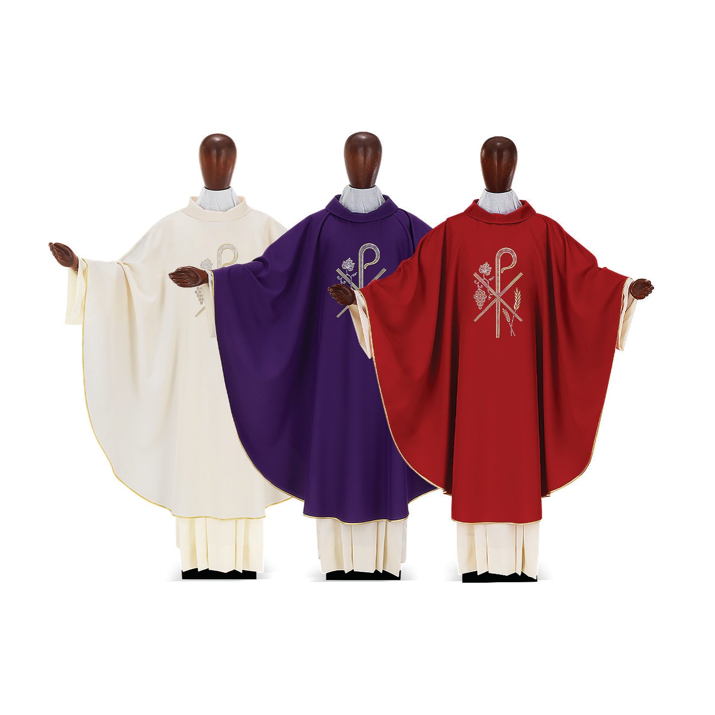 Roman chasuble with direct embroidery Chi Rho 23 design finely machine embroidered on the front and back. Made in Italy.