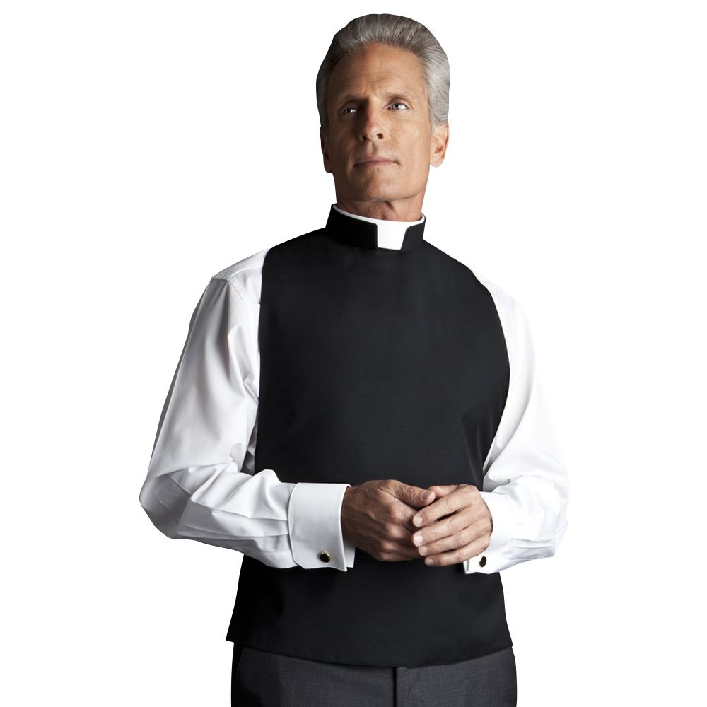 Roman Shirt Front in black pure wool, lining in viscose blend. Made in Italy.