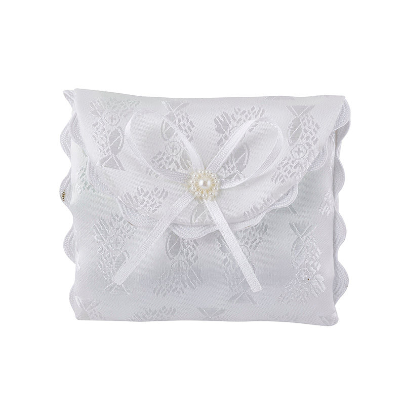 <p>A special accessory for that special day! This adorable First Communion Satin Lined Brocade Rosary Case with Chalice Print and Snap Closure not only makes the perfect choice for carrying along a gorgeous rosary and those important items, it also elegantly compliments the child's beautiful Communion dress. Comes gift boxed.</p>