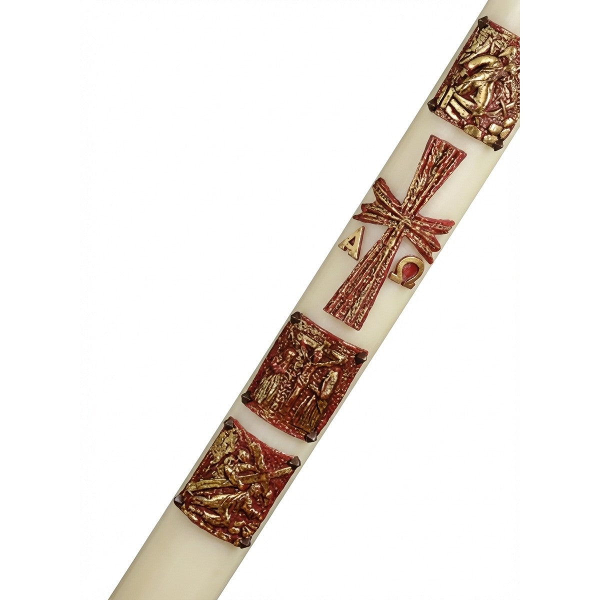 The Paschal Candle is one of the most sacred and enduring symbols of the Light of Christ, dating to the earliest days of Christianity. Made of the USA's purest and finest 51% beeswax to represent the purity of Christ, the candle's wick signifies Christ's humanity and the flame His Divine Nature. This Pascal Candle is made-to-order, handcrafted with great care in the USA.
