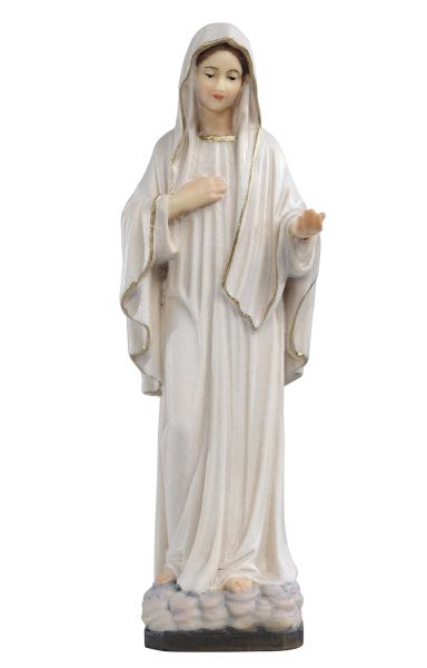 Our Lady of Medjugorje Statue - Hand Carved in Italy. Available from 5" to 10". Custom sizes are available upon request. Standard finish (as shown) is colored. Natural wood finish also available. >Please allow 4-6 weeks for delivery.