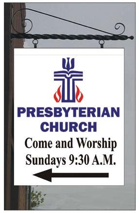 These double or single sided hanging signs are made of .063 aluminum with a powder coated finish. Bracket and mounting post sold separately.